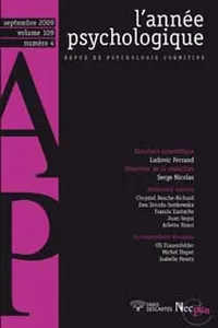 Varia Vol. 109, 2009/4 - pagesPages 585 à 606Réponses visuelles des nourrissons aux expressions faciales de leur mère lors de situations d’interaction libre face à facePar Marie-Christine Lavallée, Louise CossettePages 607 à 628La compréhension de contes présentés oralement en classes de CP et CE1 : quelle utilisation des dimensions situationnelles ?Par Nathalie BlancPages 629 à 654L’effet de l’ordre et du délai sur l’usage de trois modes de réduction de la dissonance cognitive : le changement d’attitude, la trivialisation et le déni de responsabilitéPar Maxime Denizeau, Patrick Gosling, Dominique OberléPages 655 à 698EMOTAIX : un scénario de Tropes pour l’identification automatisée du lexique émotionnel et affectifPar Annie Piolat, Rachid BannourPages 699 à 729Les fausses reconnaissances induites par les paradigmes DRM, MI et tâches dérivéesPar Sabine Langevin, Hélène Sauzéon, Laurence Taconnat, Bernard N’KaouaPages 731 à 767Remédier aux difficultés d’apprentissage des élèves présentant un trouble déficit d’attention et hyperactivité (TDA/H) par une approche métacognitive : revue de la littératurePar Nadine Kipfer, Christine Hessels-Schlatter, Jean-Louis Berger
